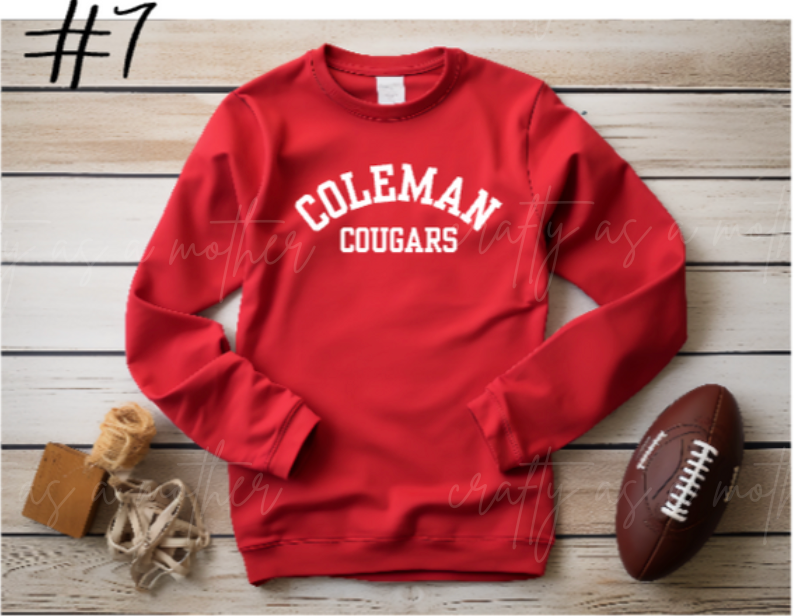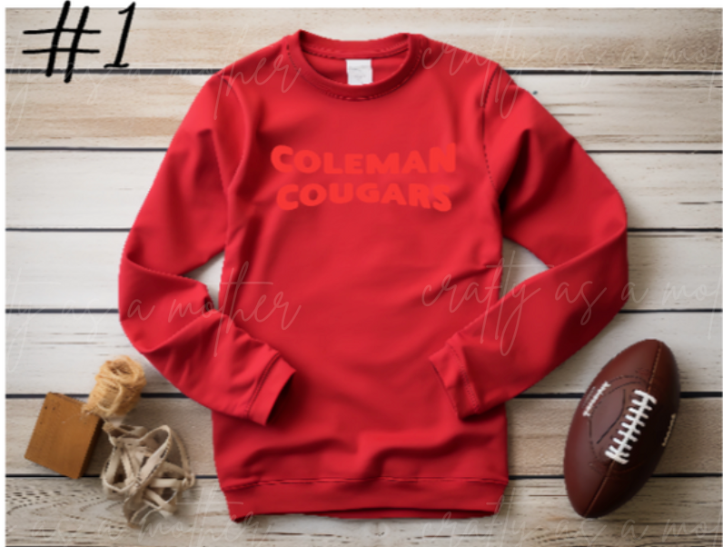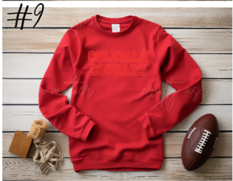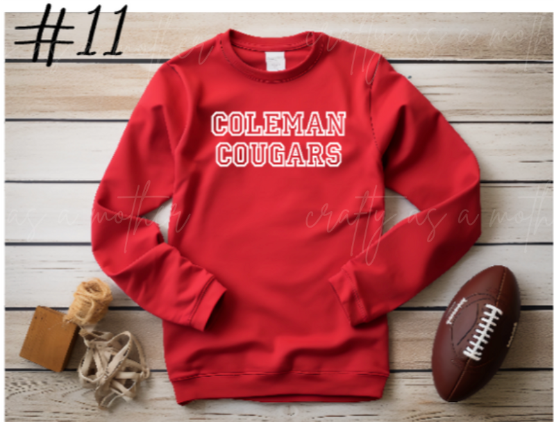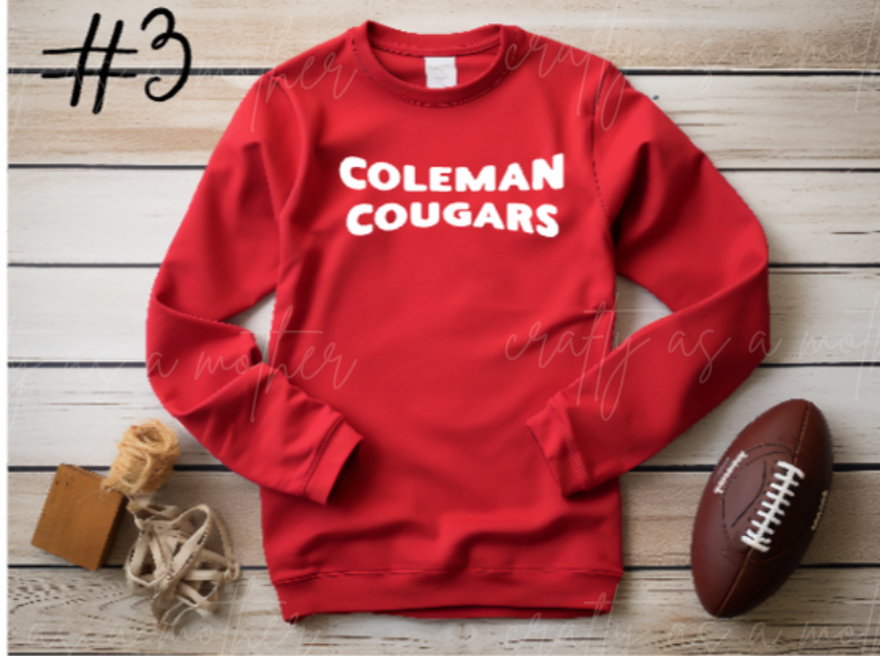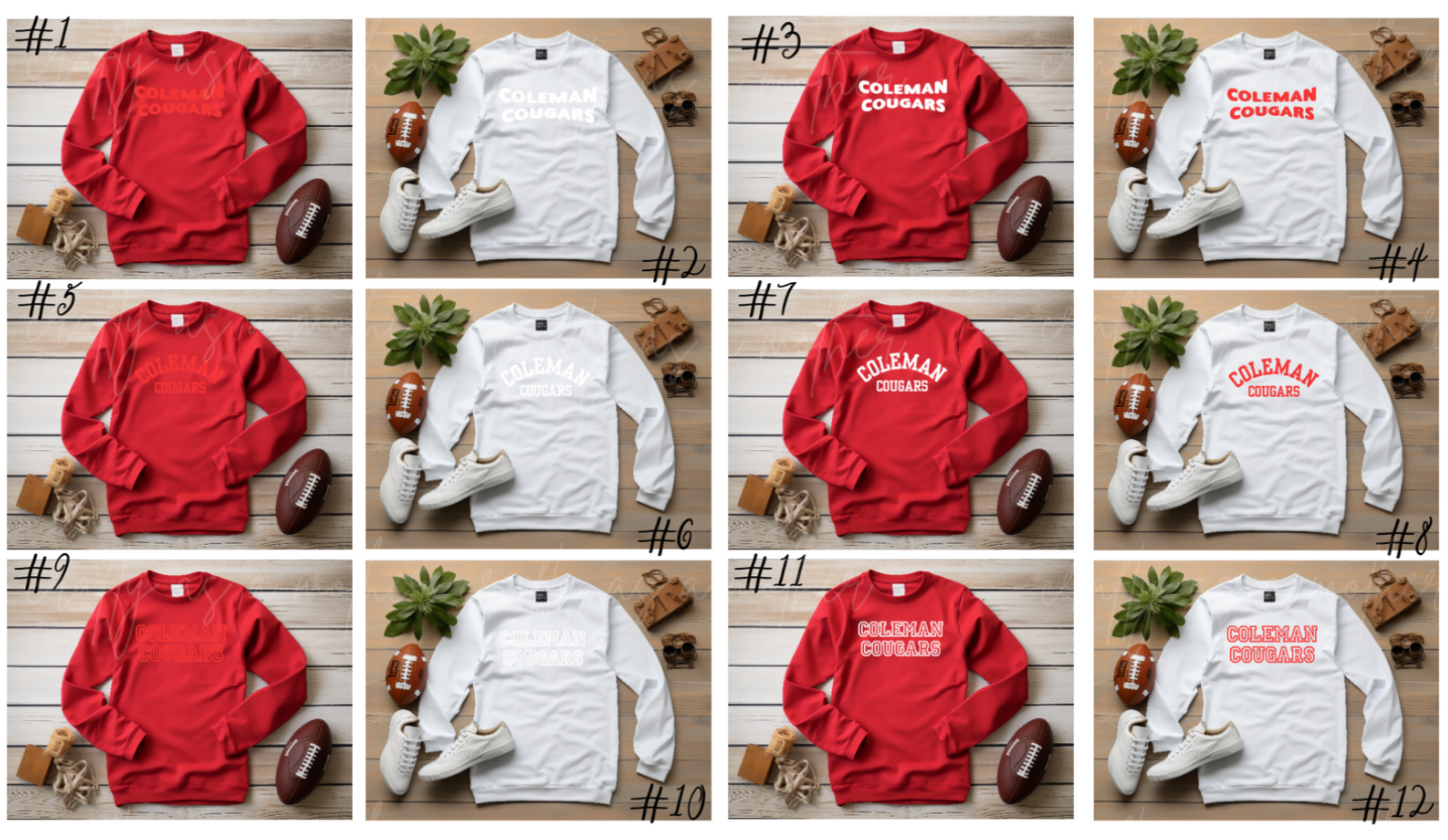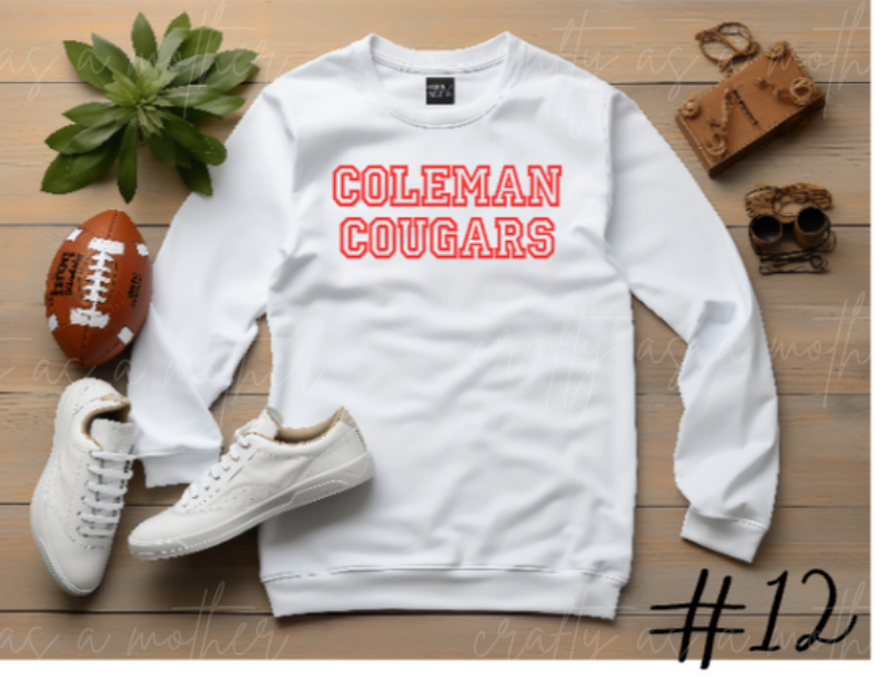 Coleman Cougars Sweatshirts - Puff Vinyl - 12 Options!