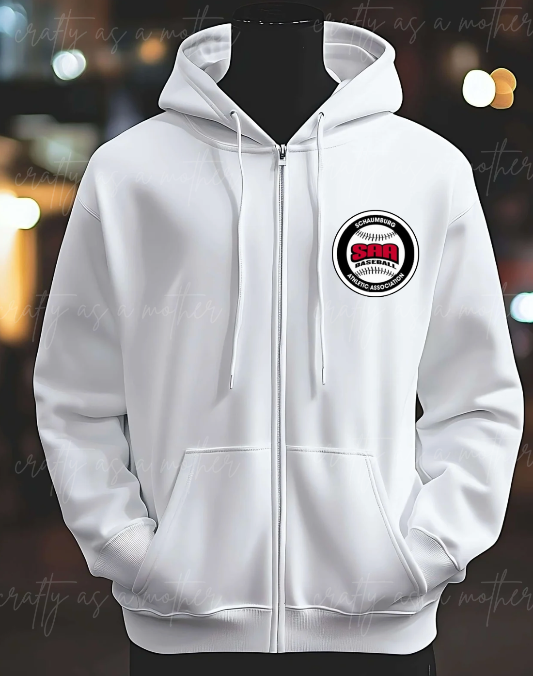 Note: Zip Up Hoodie will have SAA on the front and custom design on back